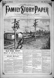 One of the most popular of the cheap periodicals published by George Munro featured Harlan P. Halsey’s Old Sleuth. The first Old Sleuth story published by George was titled "Old Sleuth The Detective; or, The Bay Ridge Mystery," by (supposedly) comedian Tony Pastor. Lawsuits were eventually to fly over the use of the name 'Sleuth' involving George, the Beadles, and Norman the usurper. Norman tried out numerous detectives with variations on Old, Young, Sleuth, and Badger. One story announced by Norman L. Munro was "Sleuth, Badger, and Co., the Bay Ridge, Wall Street, and Custom House Detectives; or, "Piping a Mysterious Crime." Bay Ridge was of course the property of George and eventually recourse to the law led to the Old Pink, Old San, and Old Cap Collier (who were really old compared to Sleuth.) Halsey, an esteemed member of the Brooklyn Board of Education and organizer of trust companies, adapted the nom de plume “Old Sleuth” and wrote over 600 detective stories. It was said that he earned a salary of $20,000 a year for his serials for George Munro.